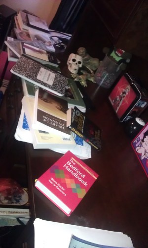 Probably under the pile of library books about Poe, by Poe, by people who like/hate/worship/wish to toss Poe down a well.