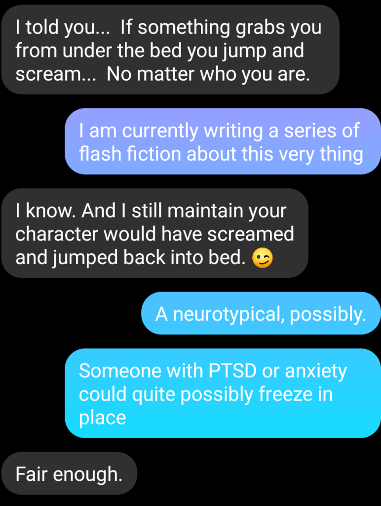 this started this started as a back and forth on my Facebook for seed ideas for stories. But I kind of like where it’s going. Lemme know here if you would like to find out what is next.